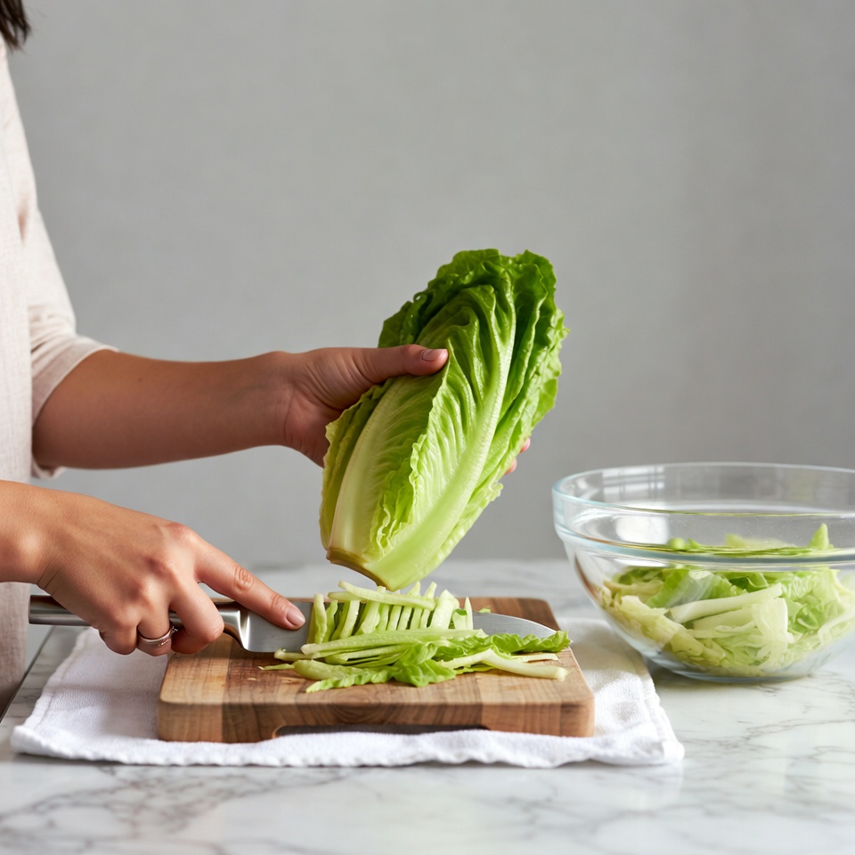 Asian, beige top, chopping cabbage, cooking, cutting vegetables, female, food prep, fresh vegetables, glass bowl, green cabbage, hands, kitchen, knife, long hair, napa cabbage, produce, sliced cabbage, wooden cutting board, woman
