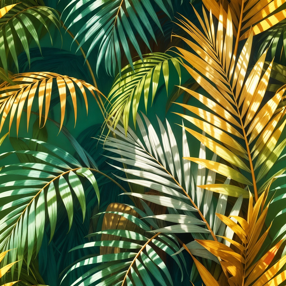 clipart, exotic plants, foliage pattern, green leaves, illustration, isolated background, jungle leaves, leaf pattern, nature pattern, palm fronds, seamless pattern, sunlight leaves, tropical leaves, tropical pattern, vibrant leaves, yellow leaves, palm leaves