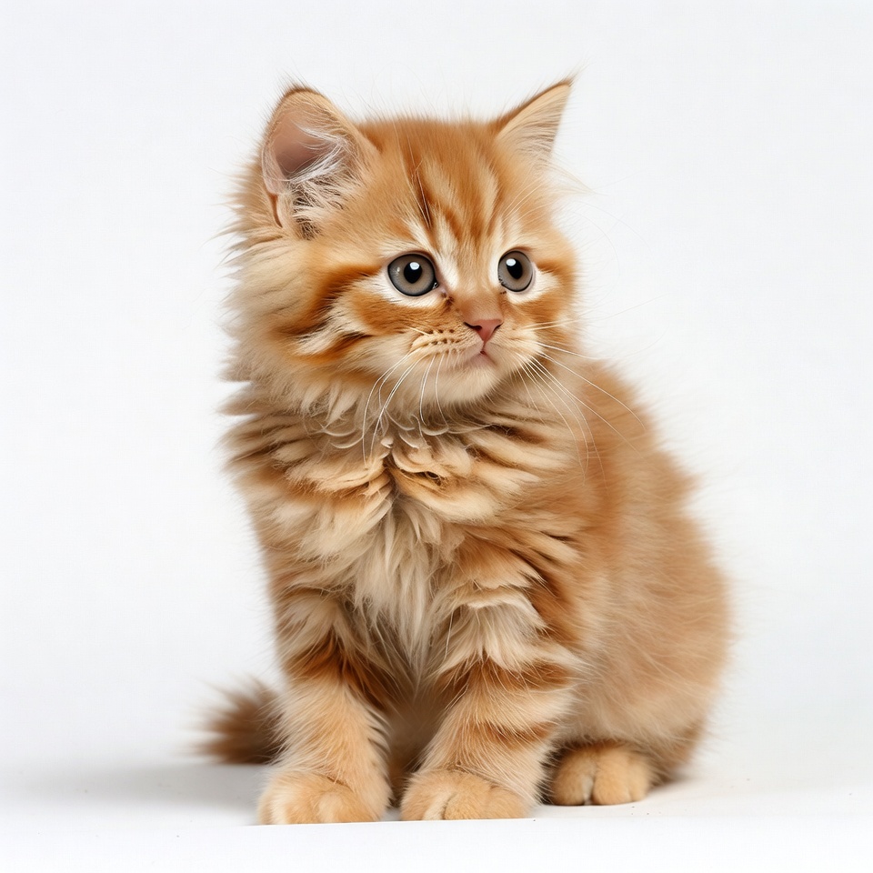 adorable kitten, cat, cute animal, fluffy fur, ginger kitten, green eyes, orange tabby, pet, sitting, striped pattern, tabby cat, white background, young cat, kitten