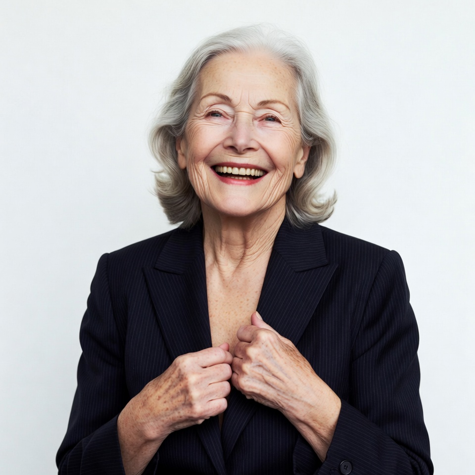 Elderly woman smiling in suit