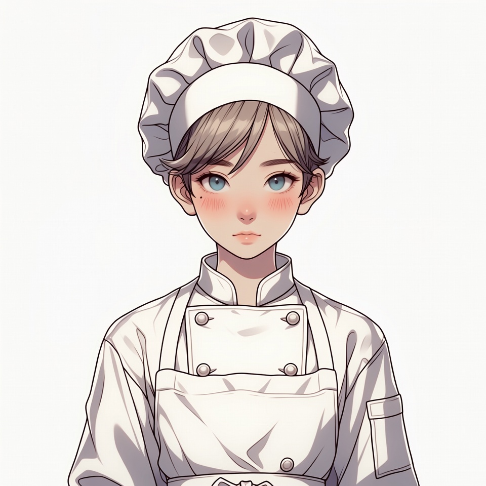 Anime girl in white chef uniform