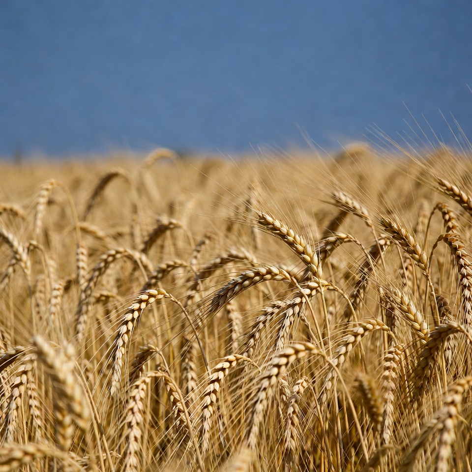 agriculture, blue sky, cereal plant, crop, farmland, field, golden wheat, grain, harvest, nature, outdoor, ripe wheat, sky background, summer, wheat crop, wheat stalks, yellow wheat, wheat field