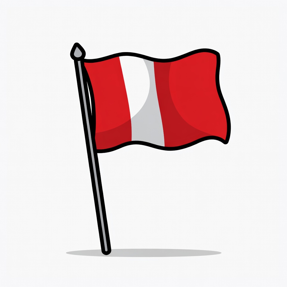 Peruvian flag, cartoon flag, clipart, flag, flag pole, illustration, isolated background, line art, national flag, red flag, simple flag, vector, waving flag, white stripe, Peru flag