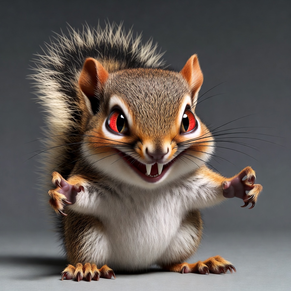 Cute squirrel with red eyes and fangs
