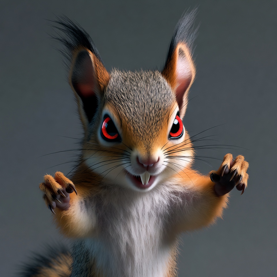Scary red-eyed squirrel with claws