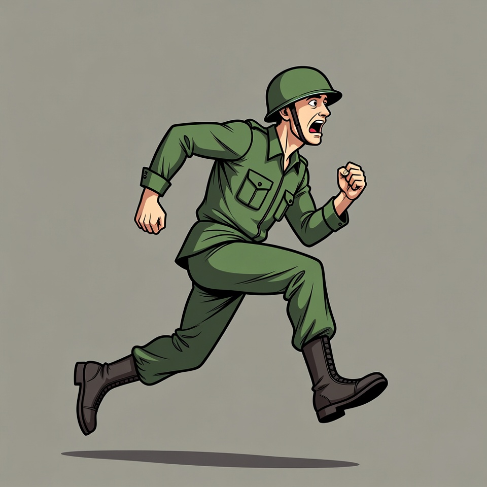 Cartoon Soldier Running in Uniform