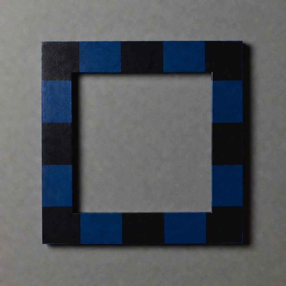 alternating pattern, art frame, black frame, black squares, blue frame, blue squares, bold pattern, border design, checkered frame, craft frame, decorative frame, empty frame, frame mockup, graphic frame, isolated background, modern frame, navy blue, photo frame, simple frame, square frame, wooden frame, picture frame