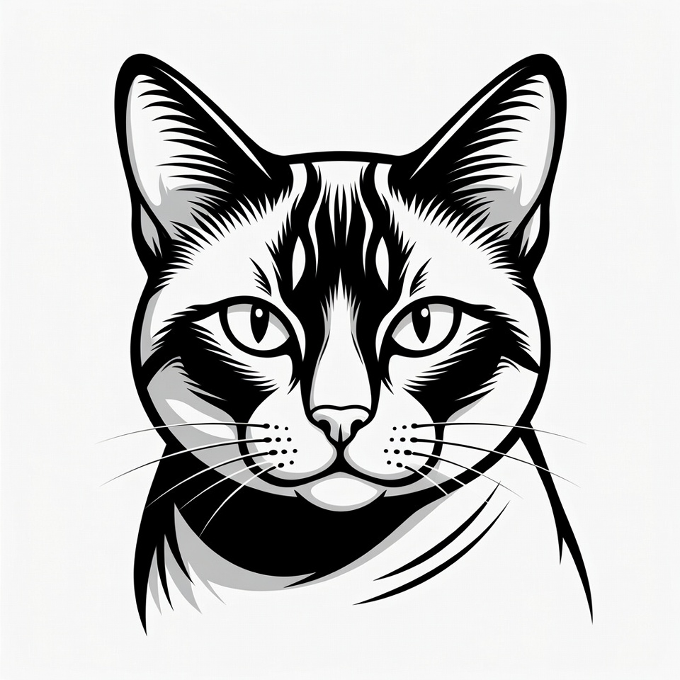 Black and White Cat Face Illustration
