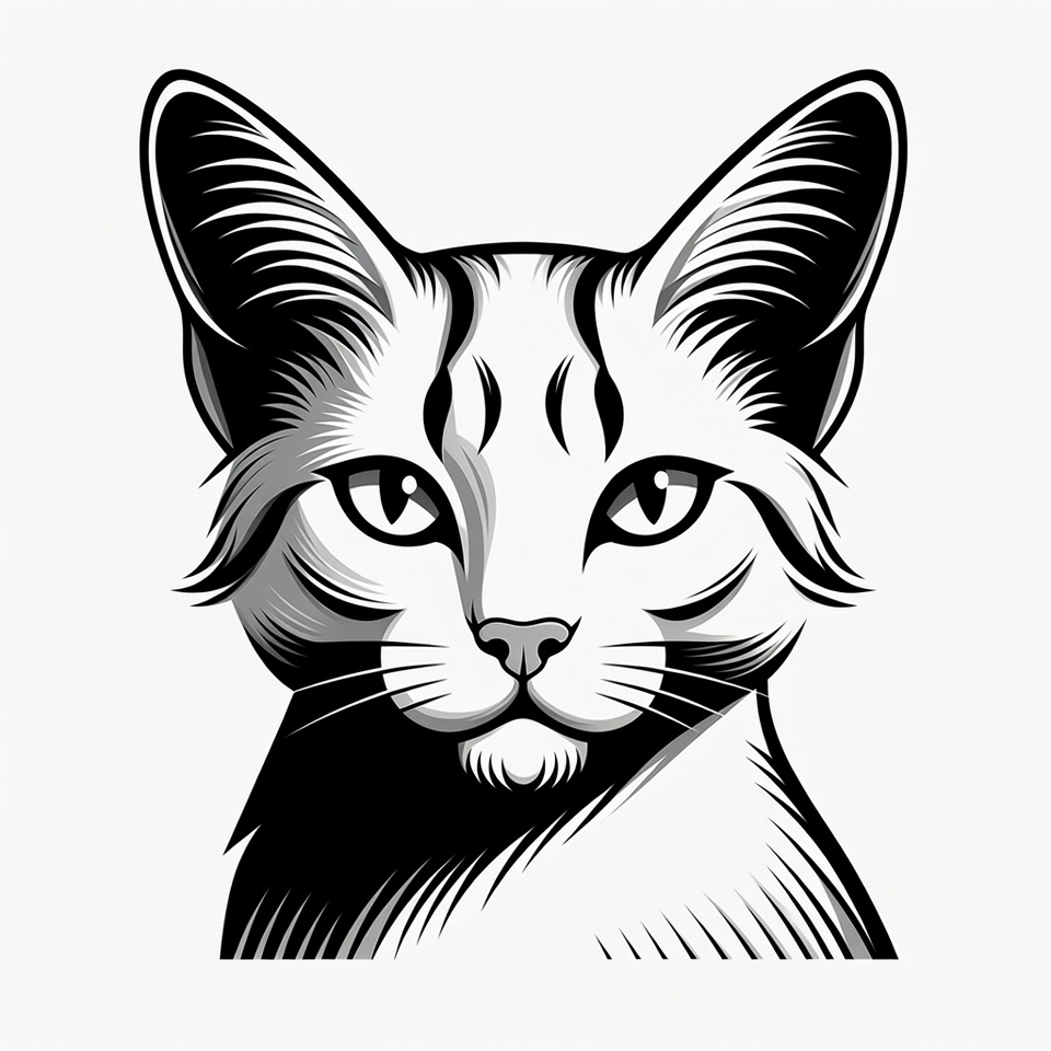 Black and White Cat Face Illustration