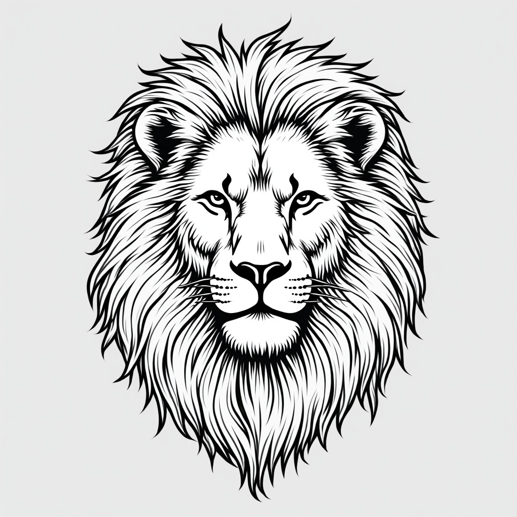 animal portrait, black and white, clipart, drawing, fierce lion, illustration, isolated background, line art, lion head, mane, roaring lion, tribal lion, vector art, wild animal, lion