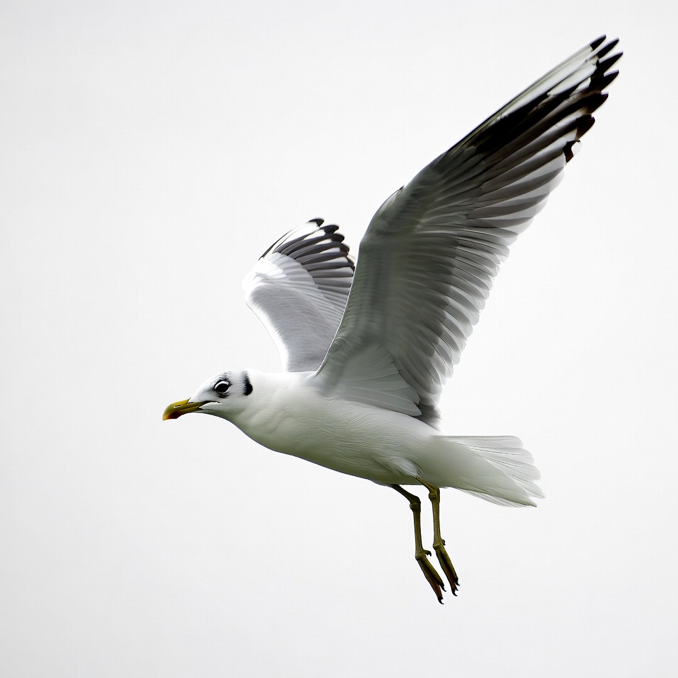 avian, bird, black wingtips, flying bird, flying seagull, gull, isolated background, seabird, white background, white seagull, wildlife, wings spread, yellow beak, seagull