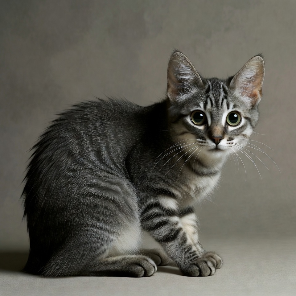 Gray tabby kitten sitting