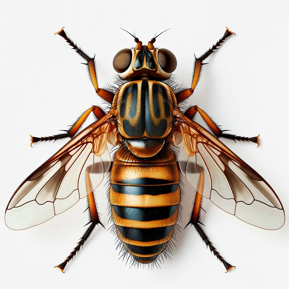 animal, arthropod, clipart, compound eyes, detailed, fly, illustration, insect, isolated background, legs, macro, nature, orange black, realistic, striped abdomen, wildlife, wings, hoverfly