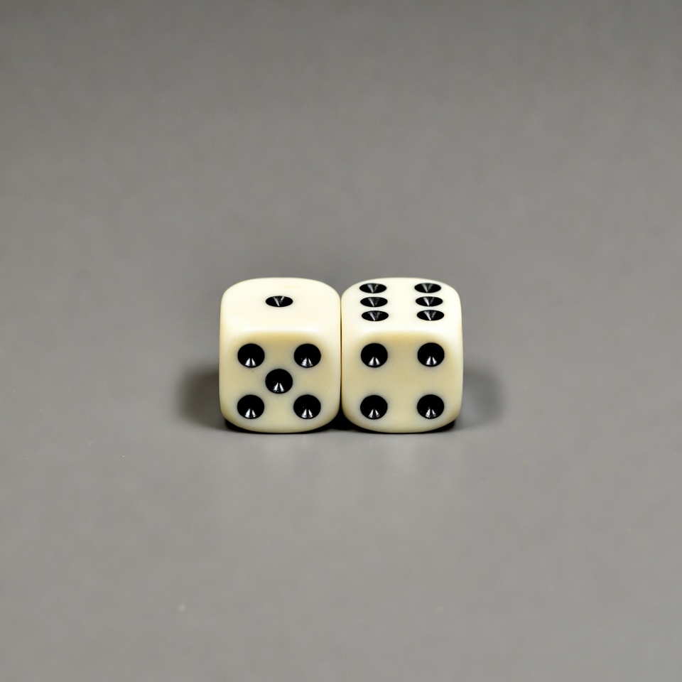 black dots, board game, casino dice, four dots, gambling dice, game dice, gray background, isolated background, six dots, six-sided dice, two dice, white dice, dice