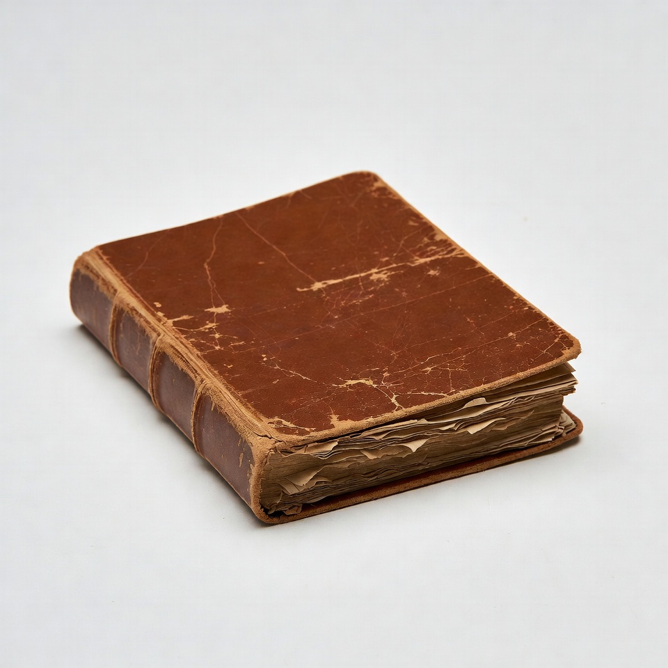 antique book, book spine, brown leather, closed book, isolated background, leather book, vintage book, worn cover, yellowed pages, old book