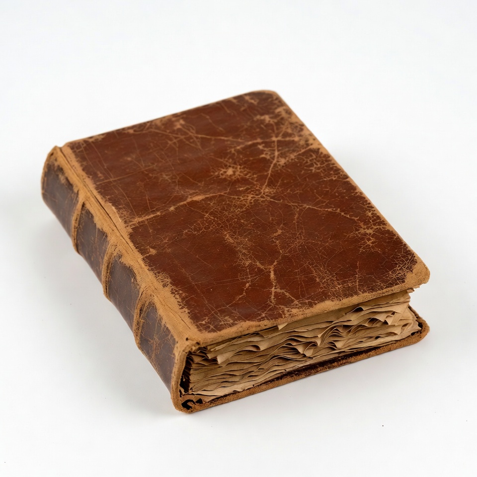 aged book, book cover, book spine, brown leather, classic book, frayed edges, historical book, isolated background, leather book, old book, open book, vintage book, worn cover, yellowed pages, antique book