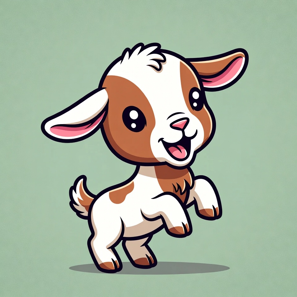 animal, big eyes, brown goat, cartoon goat, clipart, cute goat, dancing goat, farm animal, goat ears, goat illustration, illustration, isolated background, kawaii goat, kid goat, playful goat, smiling goat, white goat, baby goat