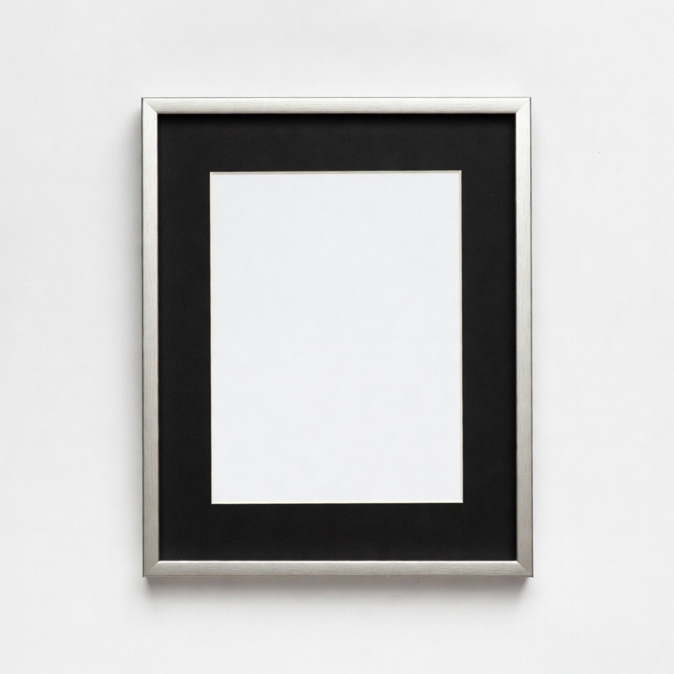 art frame, black mat, blank picture, decorative frame, empty frame, frame mockup, framing, gallery frame, isolated frame, matboard, modern frame, photo frame, picture mat, silver frame, silver metal, white background, white space, picture frame