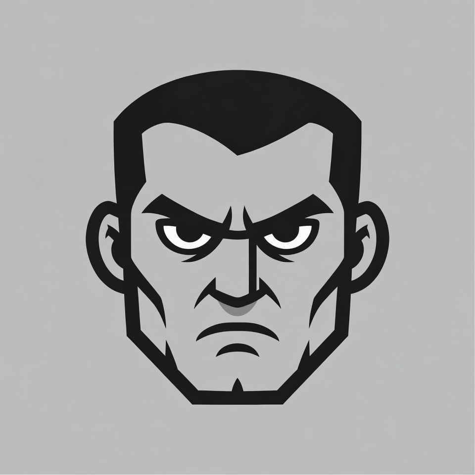 angular face, black gray, bold lines, brows, cartoon face, fierce expression, frown, illustration, intense eyes, isolated background, jawline, male, man, menacing look, scowl, superhero style, vector art, angry face