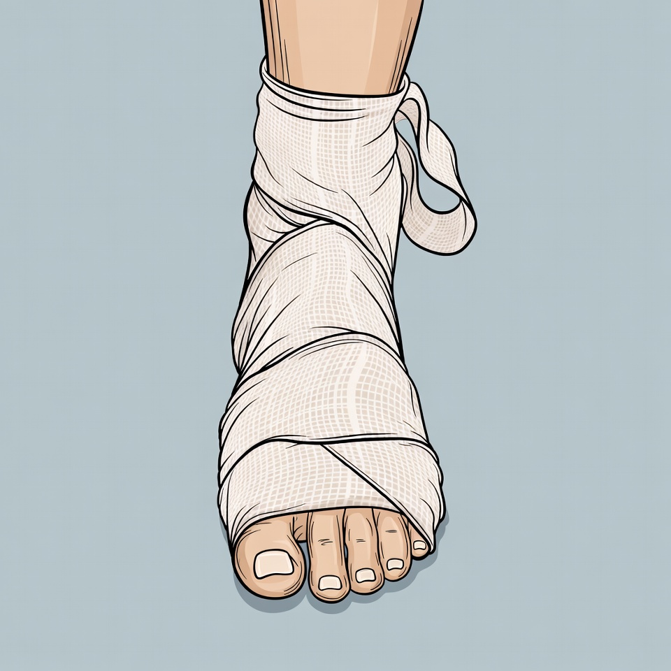bandage, clipart, foot, human foot, illustration, injury, isolated background, medical wrap, sprained ankle, toes, white bandage, wrapped ankle, ankle