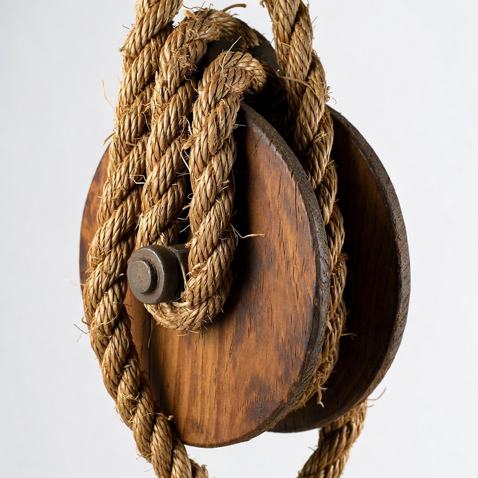 Rope on Wooden Pulley Block