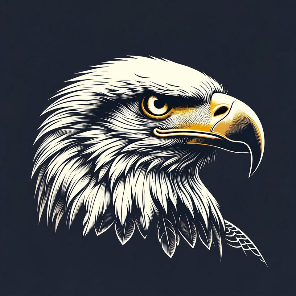 animal illustration, bird, dark background, eagle head, eagle portrait, eagle profile, feathers, illustration, isolated background, majestic eagle, raptor, white feathers, wildlife art, yellow beak, yellow eyes, bald eagle