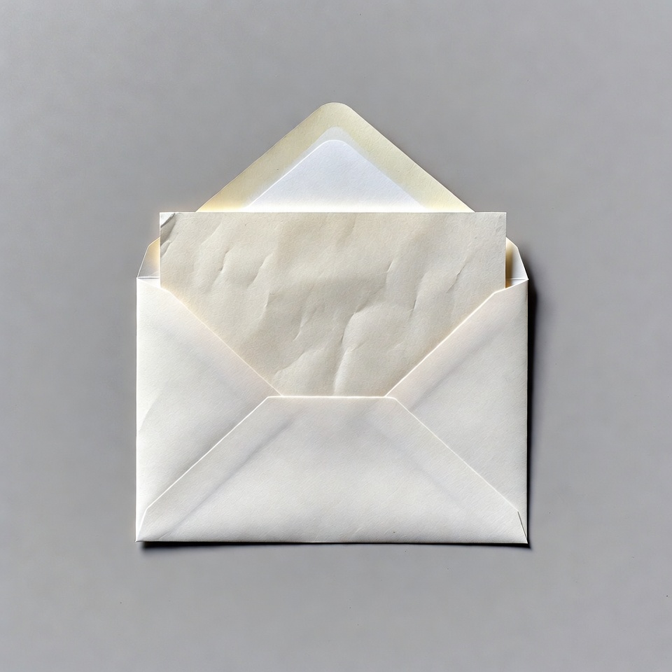 correspondence, folded letter, gray background, isolated background, letter, mail, open envelope, paper, stationery, top view, white envelope, envelope