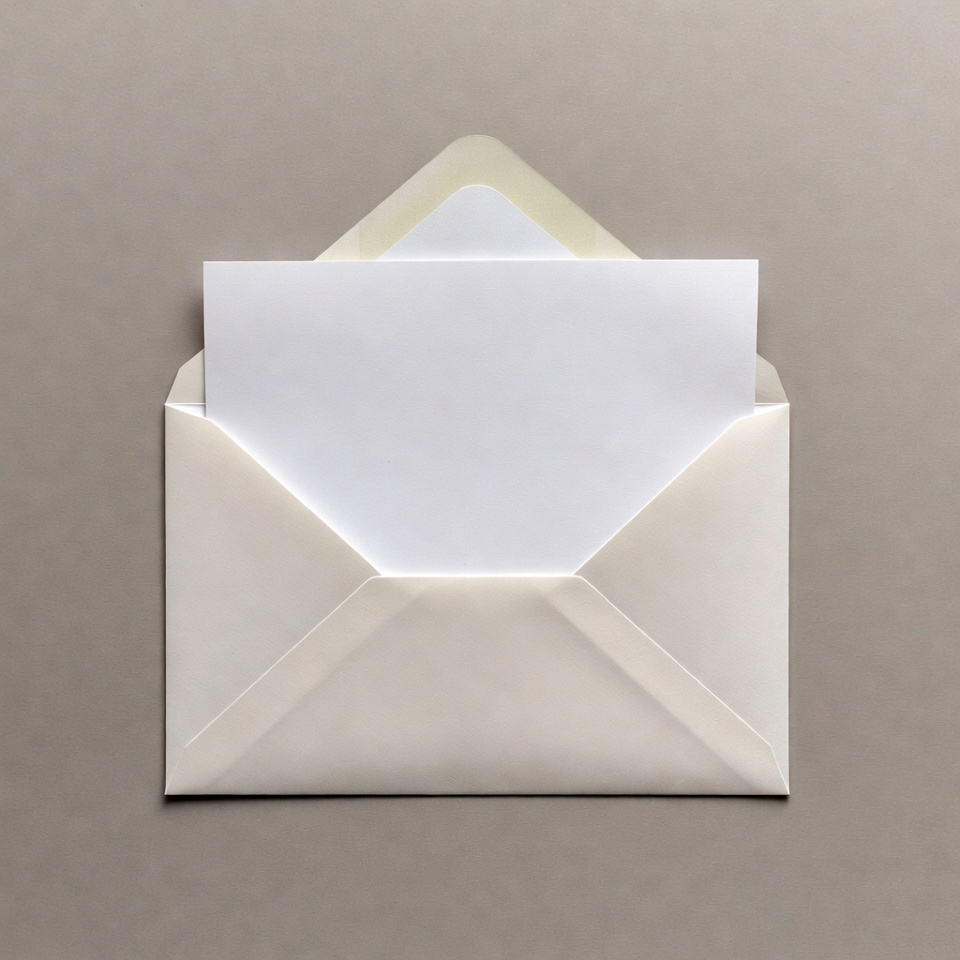 blank paper, correspondence, empty envelope, greeting card, invitation, isolated background, letter, mail, office supplies, open envelope, paper, stationery, white envelope, white paper, envelope