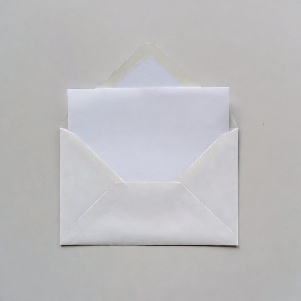 blank letter, correspondence, empty envelope, envelope flap, invitation, isolated background, letter paper, mail, message, open envelope, paper, stationery, white envelope, white paper, envelope
