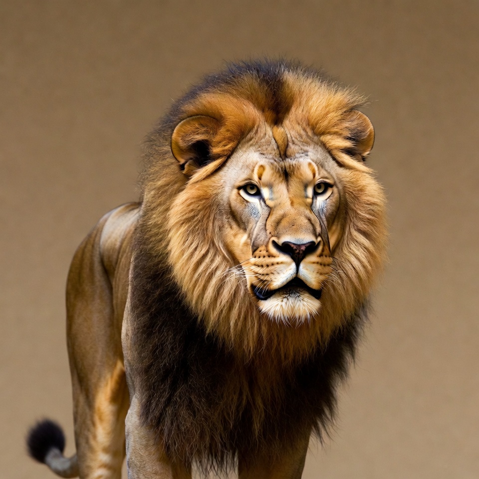 Majestic lion standing on beige background