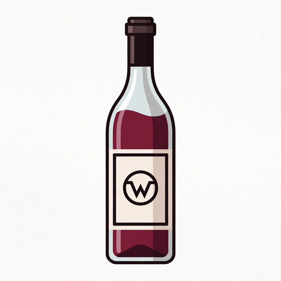 W logo, alcohol, beverage, clipart, cork, drink, glass bottle, isolated background, red wine, transparent glass, vector art, vintage bottle, wine illustration, wine label, wine bottle