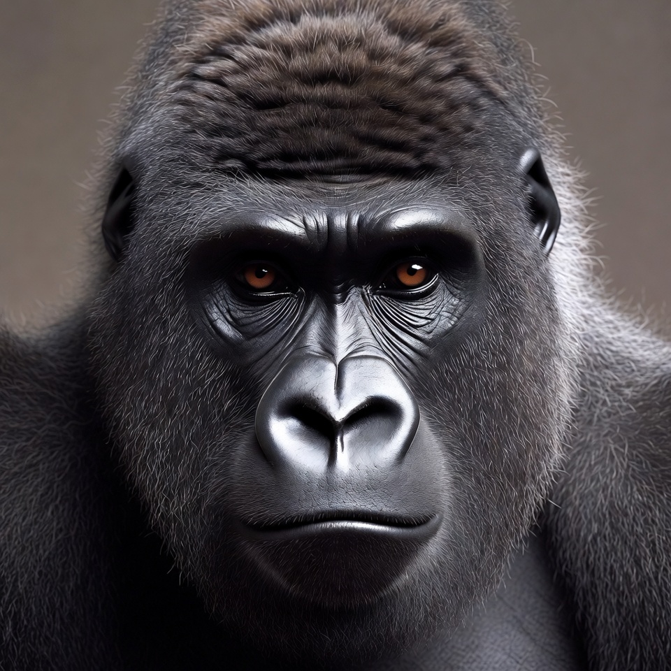 animal portrait, ape, black fur, close-up, detailed fur, furrowed brows, gorilla face, intense eyes, mammal, nostrils, portrait, powerful gorilla, primate, red eyes, serious expression, silverback gorilla, wild animal, wildlife, zoo animal, gorilla