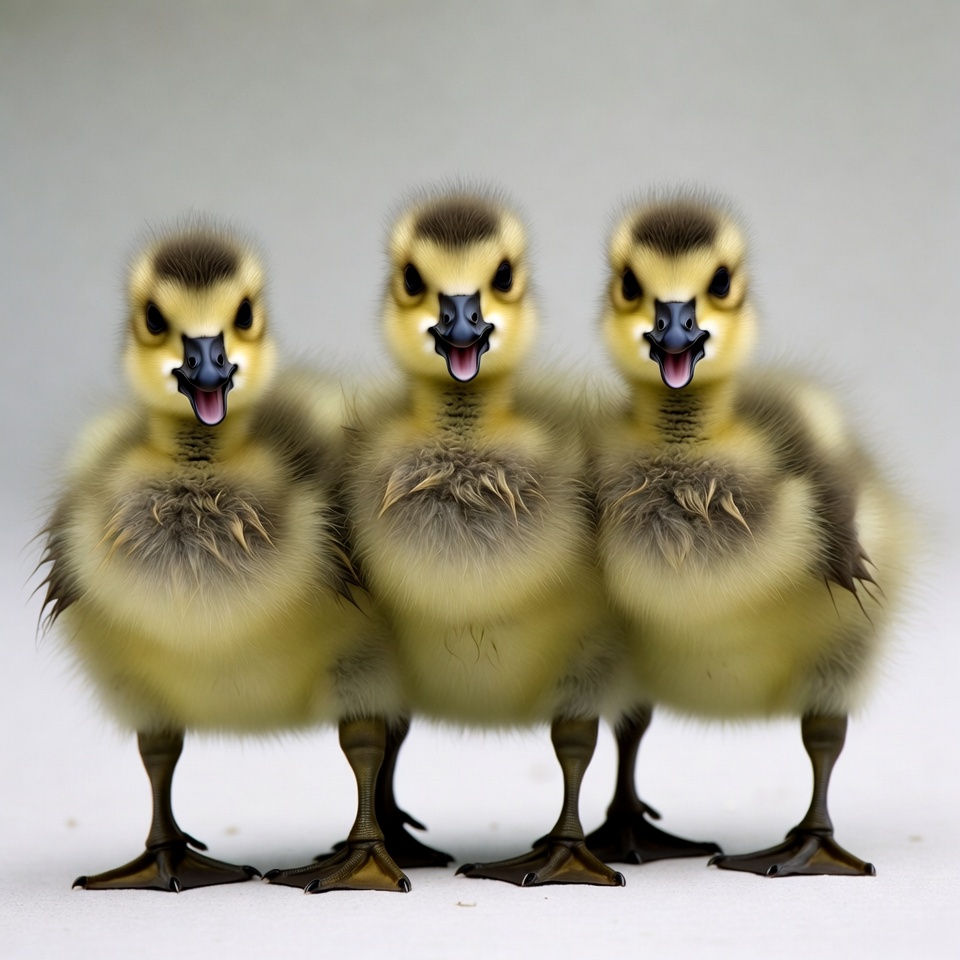 Three Cute Ducklings Standing Together