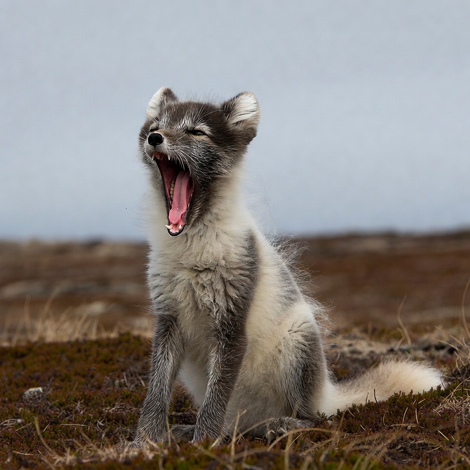 Arctic Fox Yawning in Tundra