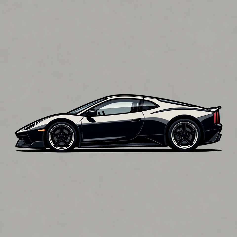 aerodynamic, alloy wheels, black car, car design, clipart, fast car, illustration, isolated background, luxury car, performance car, side view, sleek vehicle, sports car, vector art, supercar