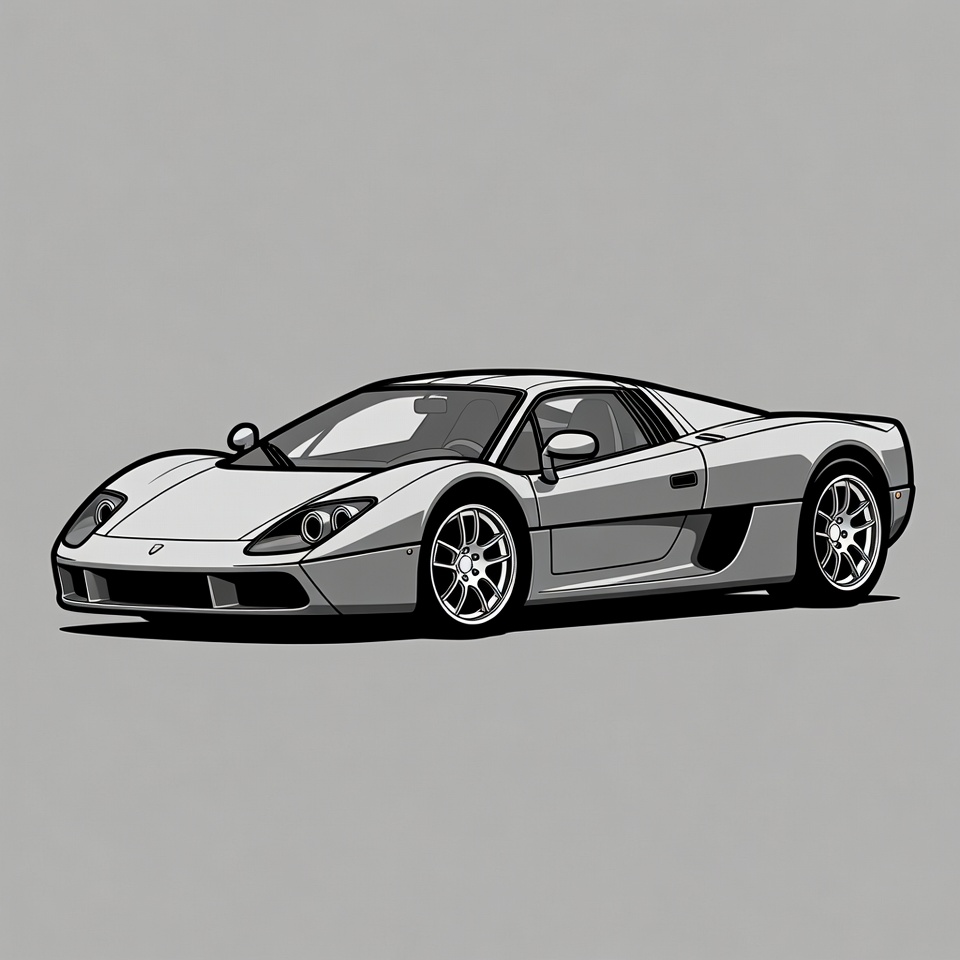 aerodynamic, auto illustration, car design, clipart, fast car, grayscale, headlights, illustration, isolated background, line art, luxury car, side view, silver car, sports car, vector art, wheels, supercar