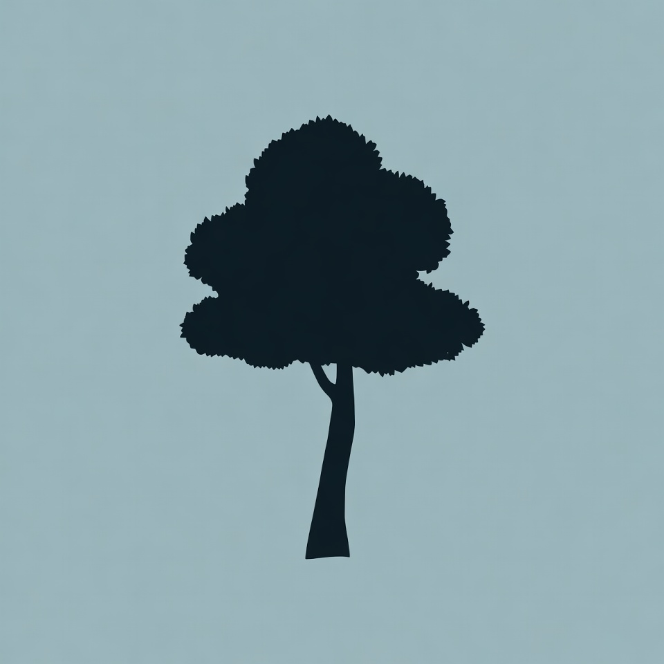 black tree, blue background, clipart, foliage, illustration, isolated background, nature, outline tree, silhouette, simple tree, trunk, tree