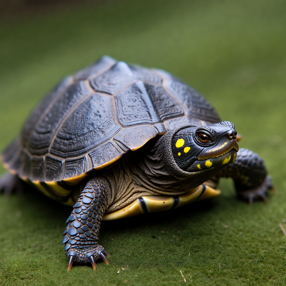 Yellow-spotted Turtle on Green Grass