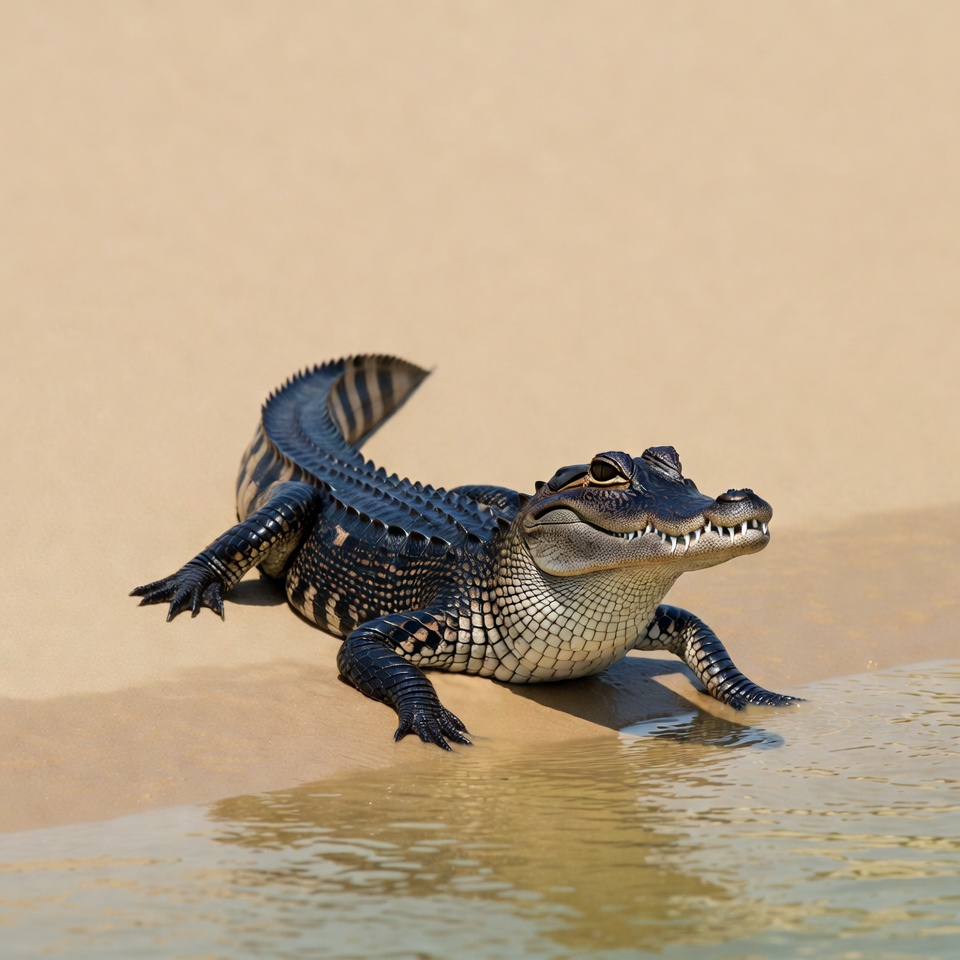 Alligator on sandy beach