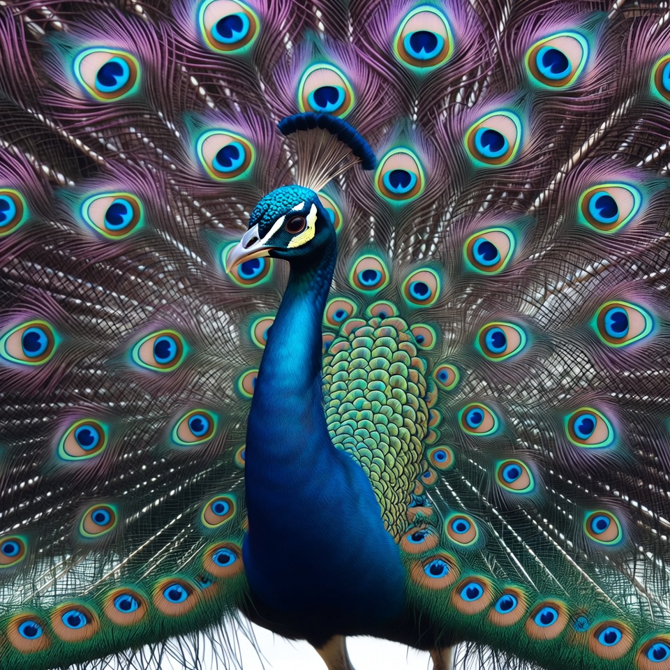 animal, beautiful bird, bird, blue feathers, crest, displaying, eye patterns, fanned feathers, feathers, green feathers, iridescent, isolated background, nature, peacock tail, peafowl, purple feathers, tail feathers, vibrant colors, wildlife, peacock