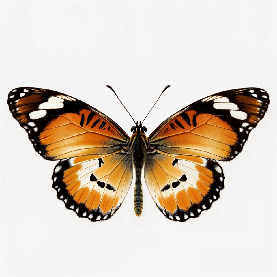 animal, black wings, colorful butterfly, flying insect, insect, isolated, monarch butterfly, nature, orange butterfly, spread wings, white background, white spots, wildlife, wings, butterfly