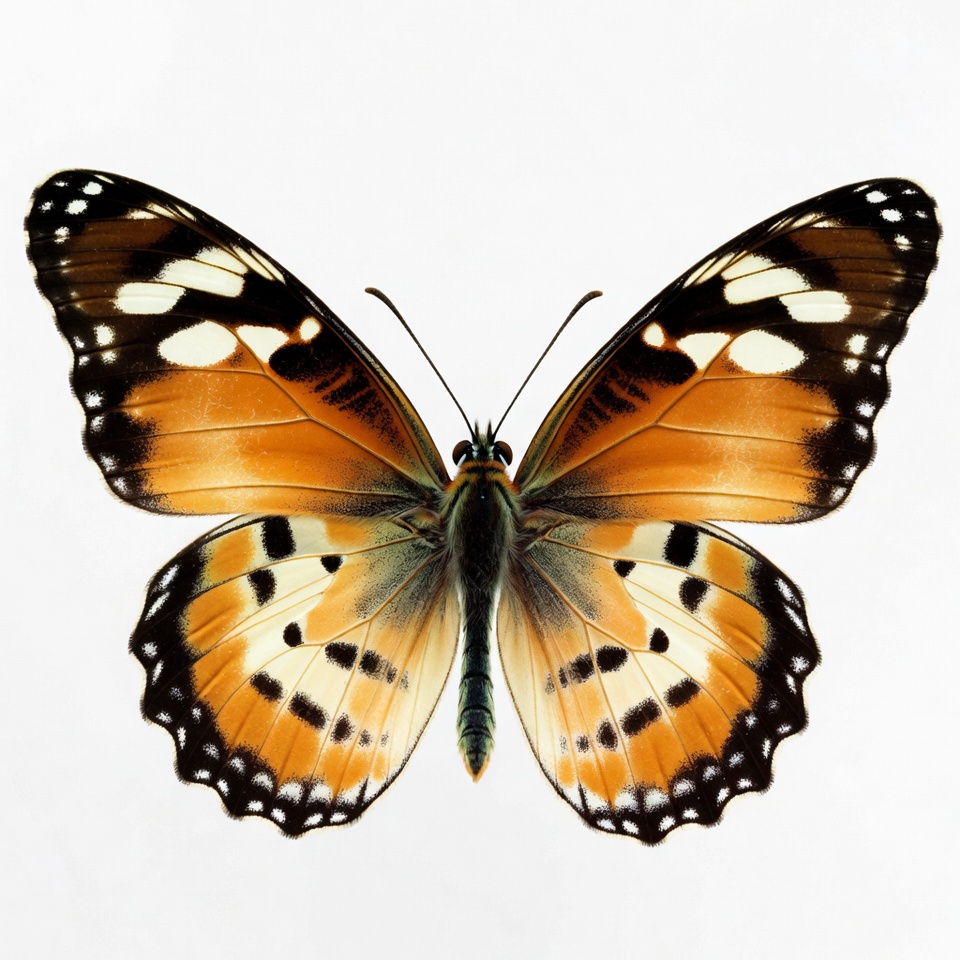 black borders, butterfly wings, colorful wings, cream spots, insect, isolated background, macro, nature, orange butterfly, white spots, wildlife, wings, butterfly
