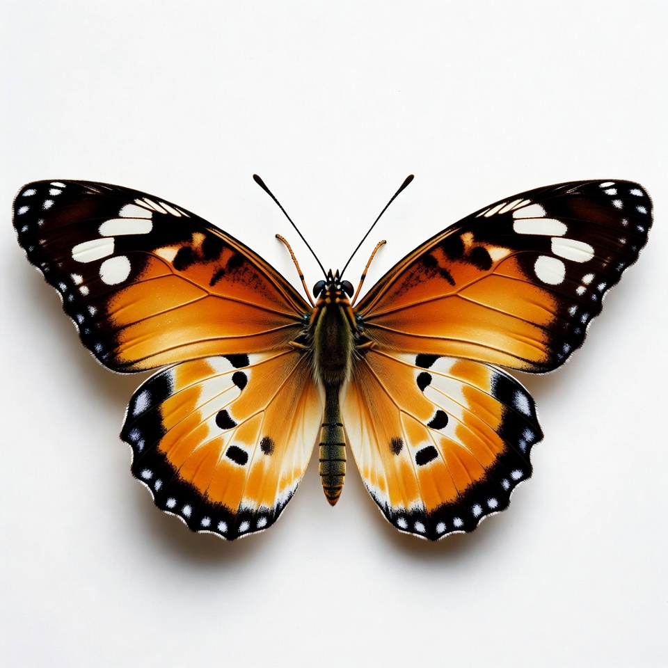 animal, black edges, insect, isolated background, macro, monarch-like, nature, orange butterfly, spotted wings, vibrant colors, white spots, wildlife, wings, butterfly