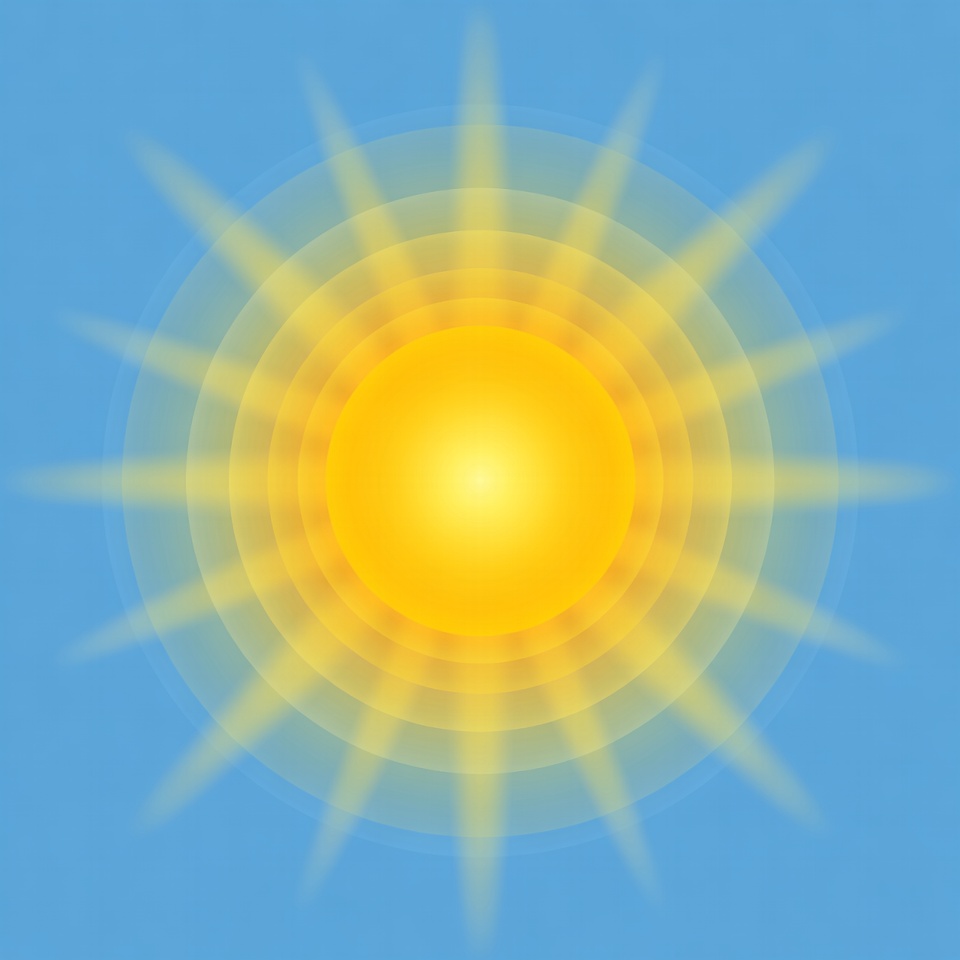 A vibrant yellow sun with radiating rays is centered on a solid blue background. The sun features multiple concentric glowing circles and pointed rays extending outward. The design is simple and illustrative.