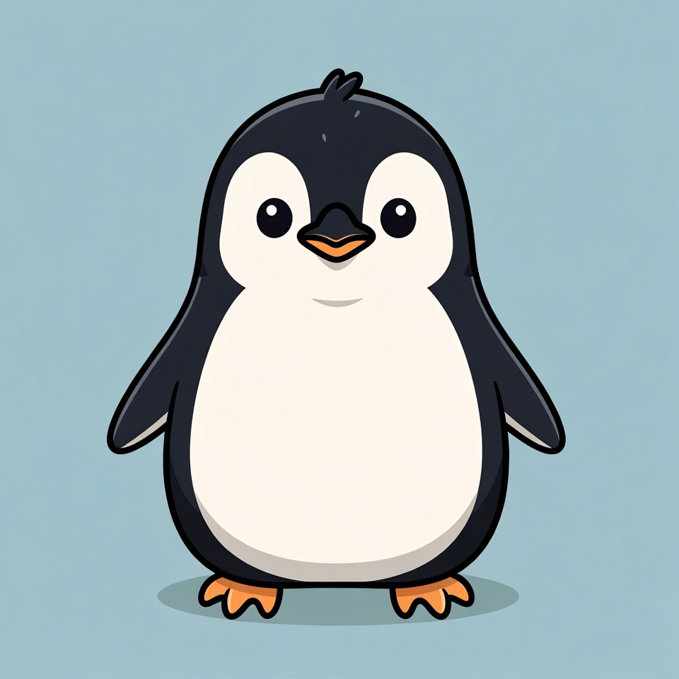 adorable, animal illustration, animated animal, big eyes, black white penguin, cartoon penguin, chibi penguin, clipart, cute penguin, isolated background, kawaii, orange beak, penguin illustration, vector art, penguin