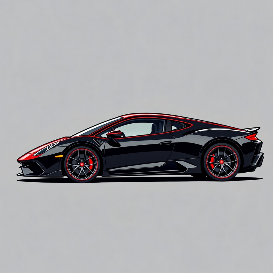Black Lamborghini Huracan side view illustration