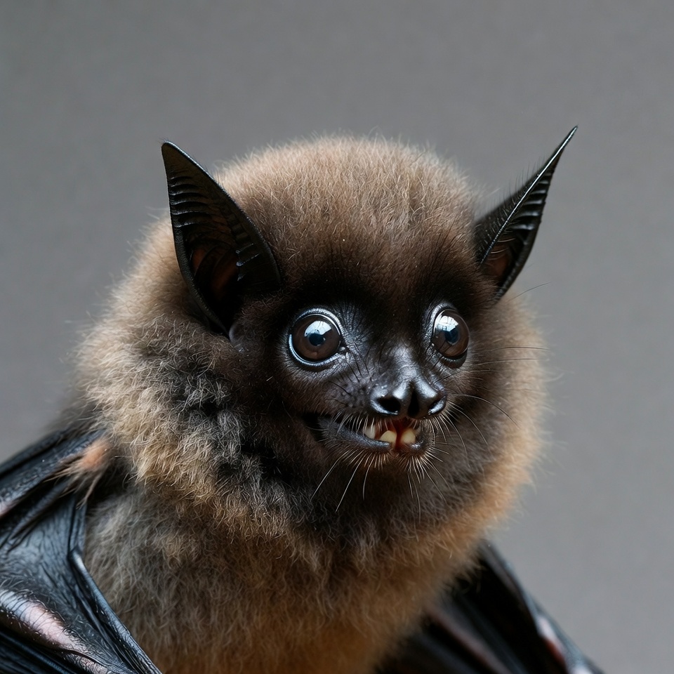 adorable bat, animal portrait, baby bat, bat closeup, big ears, cute bat, fangs, fluffy fur, flying fox, isolated background, large eyes, mammal, nocturnal animal, wildlife, fruit bat