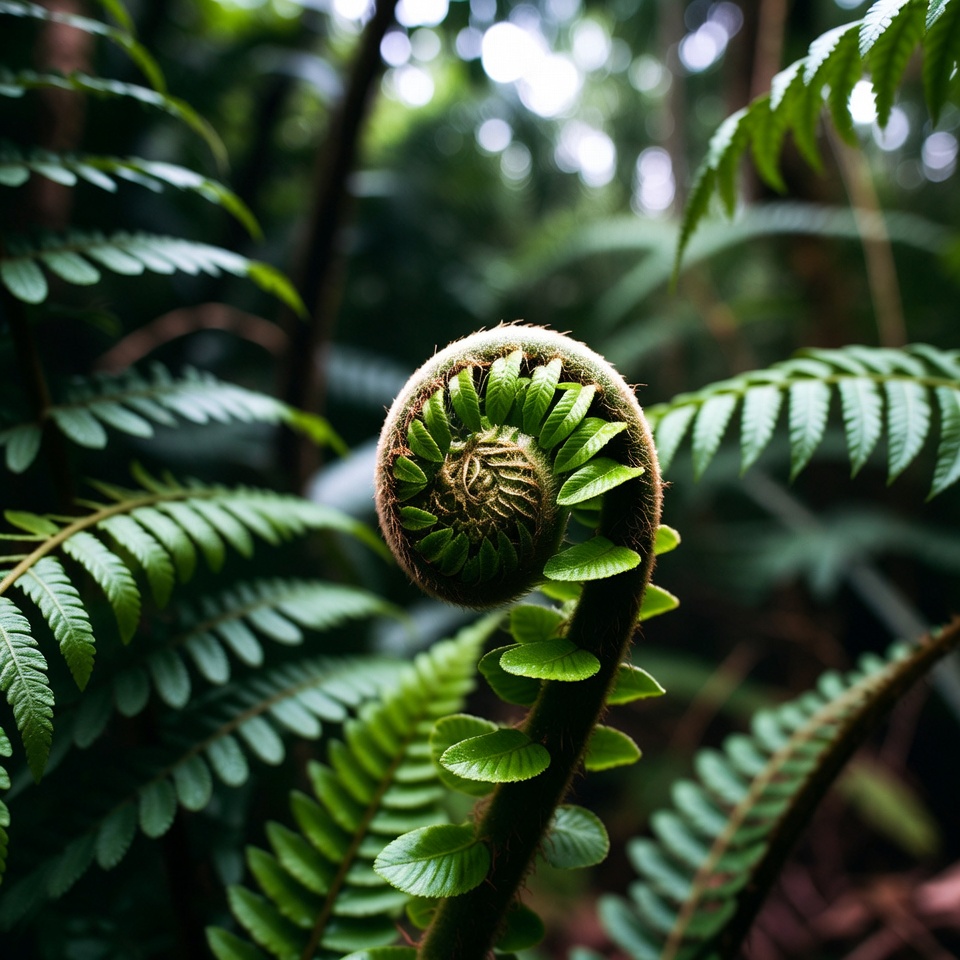 botany, fern growth, fern plant, fiddlehead fern, forest flora, fronds, green fern, green leaves, greenery, jungle background, lush foliage, natural habitat, nature macro, new fronds, plant closeup, rainforest plant, spiral frond, tropical jungle, wild plants, fern fiddlehead