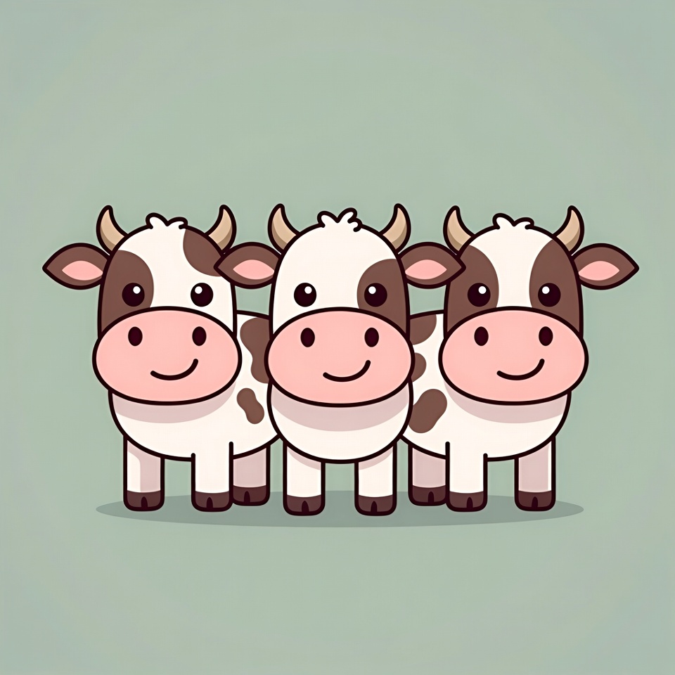 Three Cute Cartoon Cows Smiling
