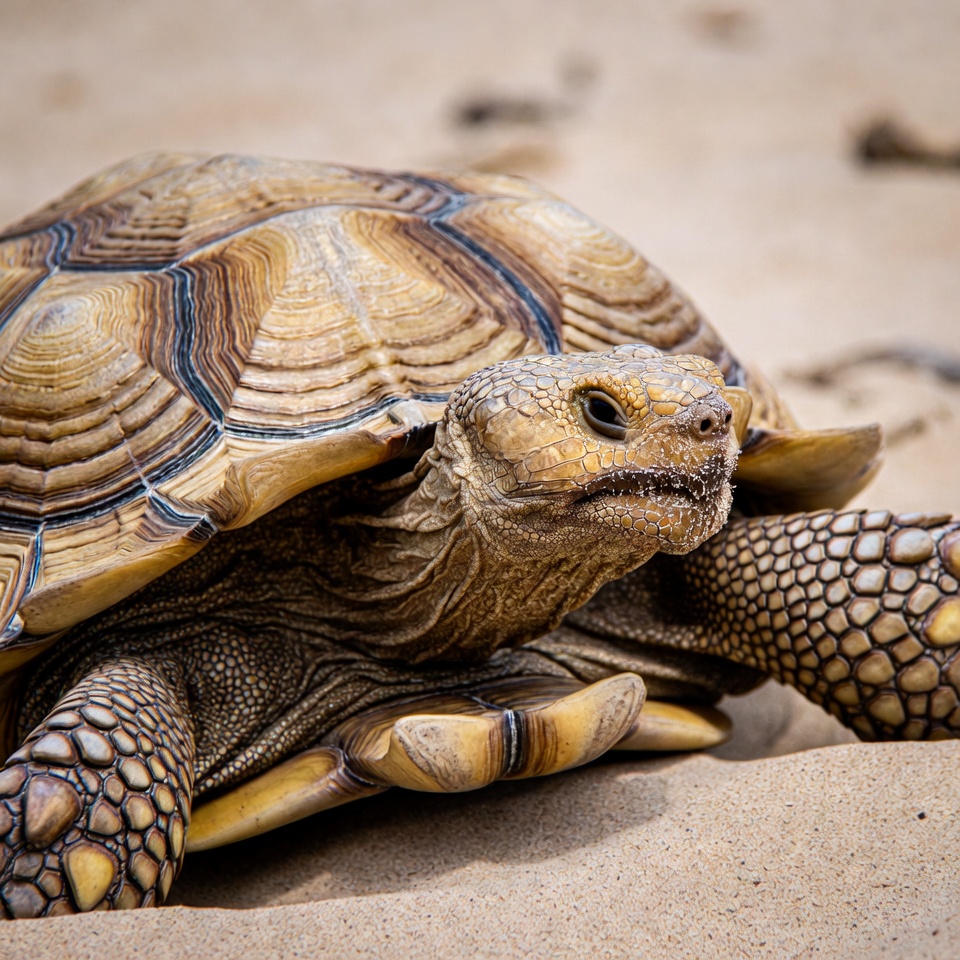 Sulcata Tortoise on Sandy Beach